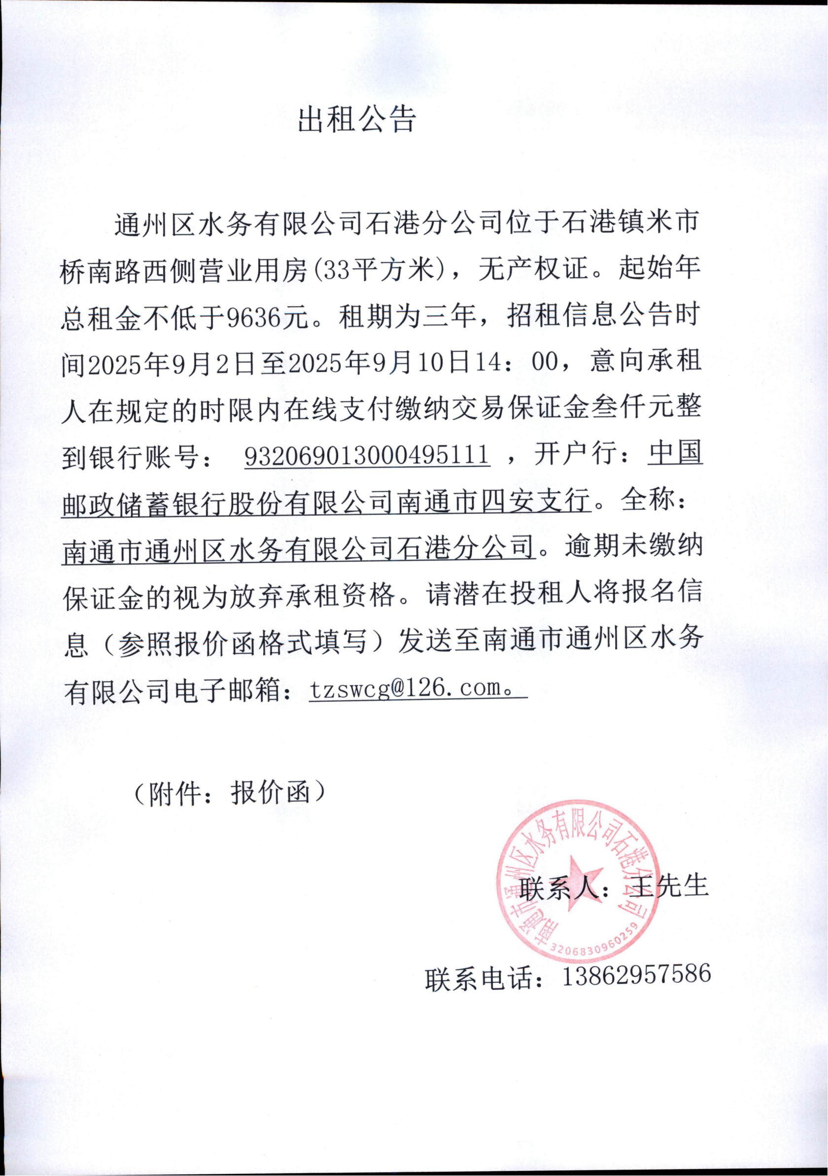 - 南通市通州區(qū)棲楓污水處理有限公司聚合硫酸鐵溶液采購公開詢價文件2025-08-01